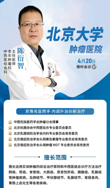 本次会诊由北京大学肿瘤医院陈衍智主任医师领衔。陈衍智主任从事肿瘤临床与科研工作超 30 年,主持多项国家级临床课题,入选北京市中医药局 “人才培养计划” 。